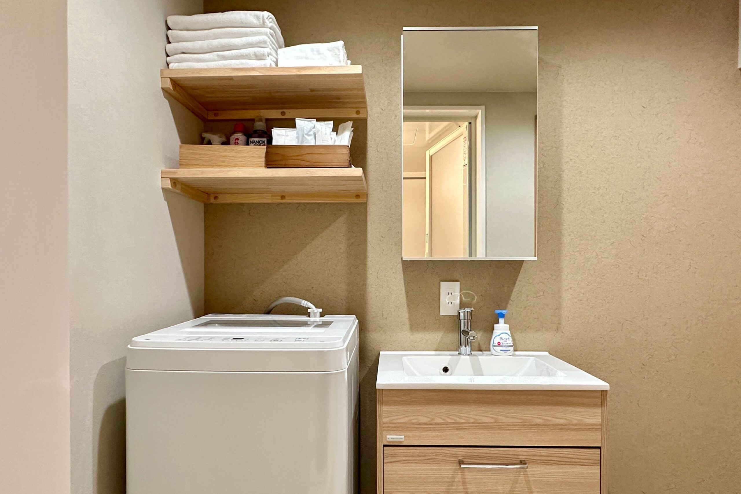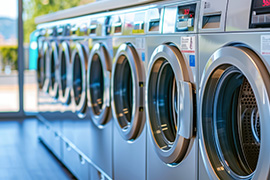 - 専用棟にコインランドリーを完備しております。洗濯から乾燥までワンストップで対応し、洗剤は自動投入で手間なくご利用いただけます。