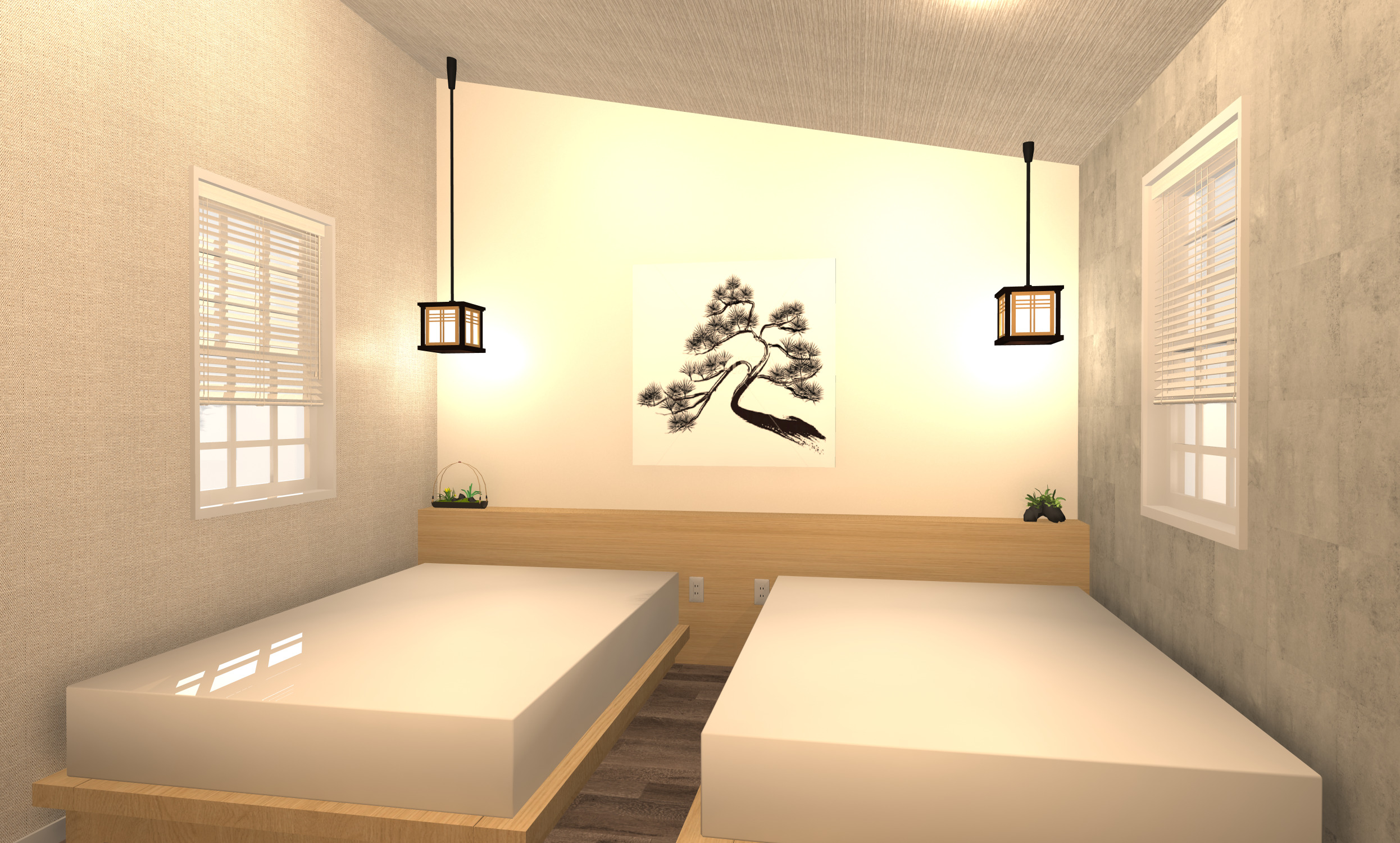 ベッド:ダブルベッド (幅140×奥行196) 2台