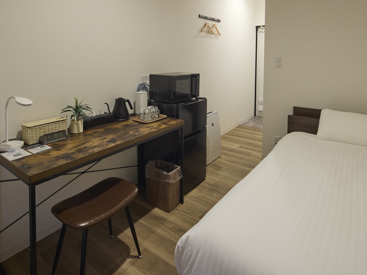 旅や仕事の拠点としてシンプルに、スマートにくつろげるお部屋となっております。